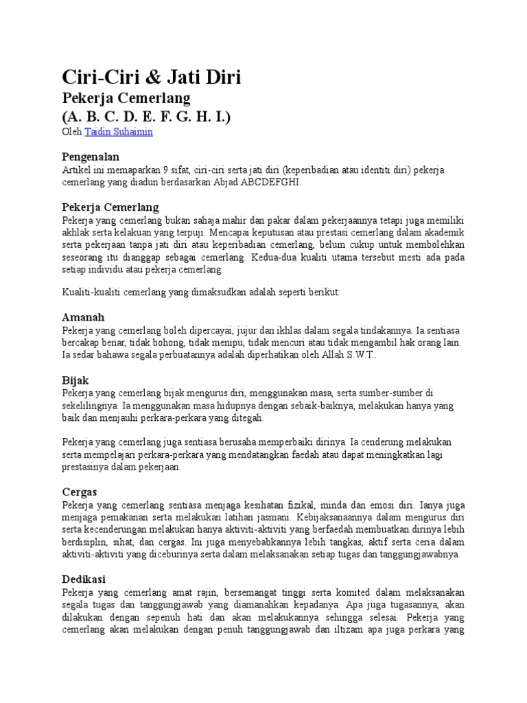 Ciri Ciri Pekerja Yang Baik
